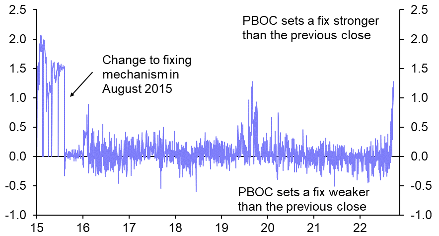 Chart 3: USD/CNY Fix vs Previous Close |