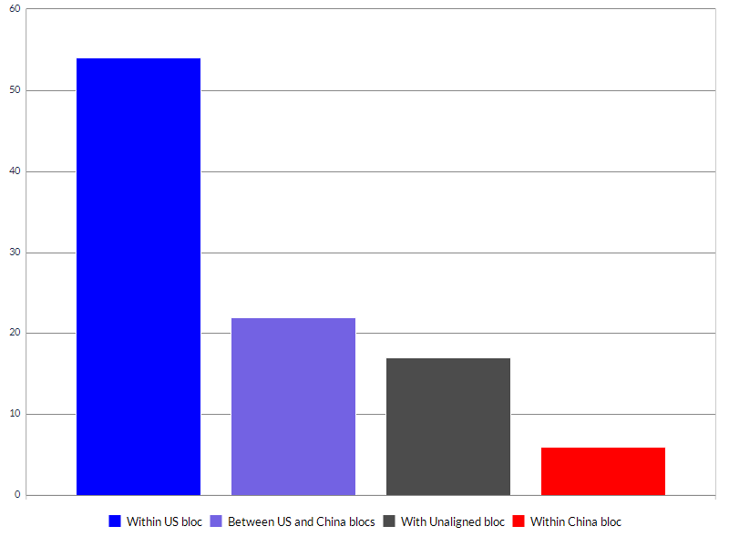 First, while trade between China, Russia and the Middle East is growing, it still accounts for only 2% of global trade. Most trade still happens between US-aligned countries, and will continue to be denominated in US dollars. (See Chart 3 – the data for all our Spotlight work can be downloaded here.) Second, China, Russia and the Gulf countries all run large current account surpluses, which will tend to work against them becoming a serious rival to the dollar as a reserve currency (since demand for reserve assets is high, the country with the dominant reserve currencies tends to run current account deficits).
