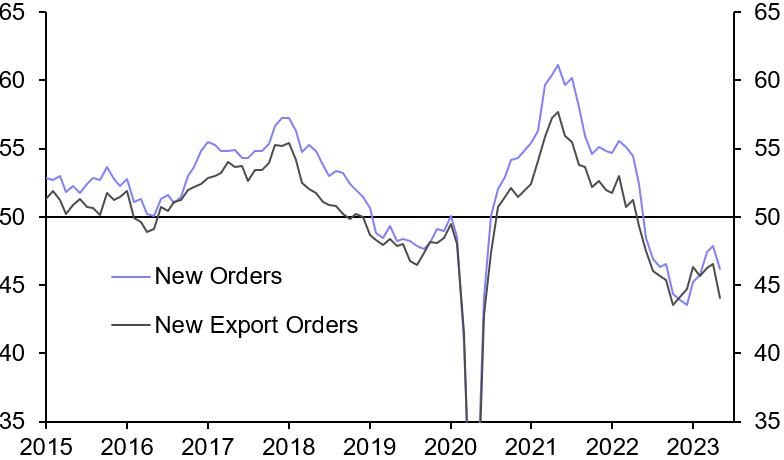 Similarly, the experience of lockdowns is probably playing some role in the strength of services. It is notable that the strongest sub-sectors in services are leisure, hospitality and transport. So despite a squeeze in real incomes across developed economies, consumers are prioritising social activities and travel. Moreover, savings that were accumulated during the pandemic have helped cushion the blow to incomes and sustain the post-pandemic rebound in services for longer than would otherwise have been the case.